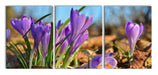 Exotische lila Krokusse, XXL Leinwandbild als 3 Teiler
