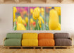 Gelbe Tulpen im Frühling, XXL Leinwandbild als 3 Teiler