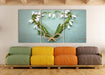 Herz aus Blumen, XXL Leinwandbild als 3 Teiler