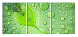Herz aus Tautropfen Blatt, XXL Leinwandbild als 3 Teiler