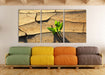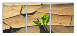 Keimling in ausgetrocknetem Boden, XXL Leinwandbild als 3 Teiler