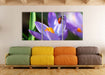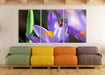 Krokussblüte mit Marienkäfer, XXL Leinwandbild als 3 Teiler