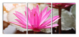 Lilafarbene Wasserlilie, XXL Leinwandbild als 3 Teiler