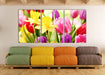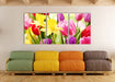 Osterglocken und Tulpen, XXL Leinwandbild als 3 Teiler