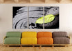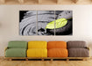 Stein mit Blatt, XXL Leinwandbild als 3 Teiler