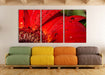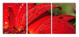 Tautropfen auf roter Blume, XXL Leinwandbild als 3 Teiler