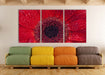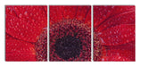 Wassertropfen auf roter Blüte, XXL Leinwandbild als 3 Teiler