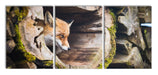 Fuchs im Baumstamm, XXL Leinwandbild als 3 Teiler