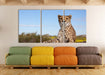 Gepard in Savanne, XXL Leinwandbild als 3 Teiler