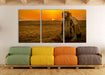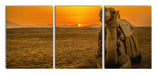 Kamel in Wüste bei Sonnenaufgang, XXL Leinwandbild als 3 Teiler