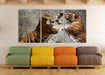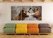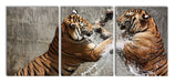 Kämpfende Tiger im Wasser, XXL Leinwandbild als 3 Teiler