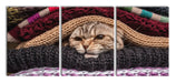 Katzen zwischen Pullovern, XXL Leinwandbild als 3 Teiler