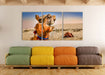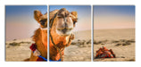 Lustiges Kamel in Wüste, XXL Leinwandbild als 3 Teiler