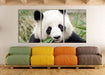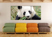 Pandabär frisst Bambus, XXL Leinwandbild als 3 Teiler