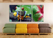 Rotaugenlaubfrosch auf Ast, XXL Leinwandbild als 3 Teiler