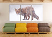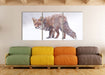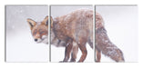 Roter Fuchs im Schneegestöber, XXL Leinwandbild als 3 Teiler