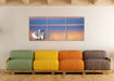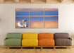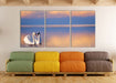 Schwäne in Abenddämmerung, XXL Leinwandbild als 3 Teiler