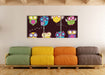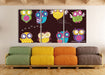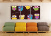 Verrückte Eulen für Kinder, XXL Leinwandbild als 3 Teiler