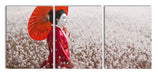 Geisha auf dem Feld, XXL Leinwandbild als 3 Teiler