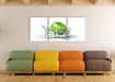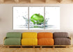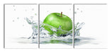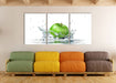 Grüner Apfel fällt in Wasser, XXL Leinwandbild als 3 Teiler