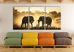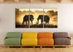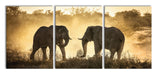 kämpfende Elefanten, XXL Leinwandbild als 3 Teiler