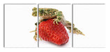 Kleiner Frosch sitzt auf Erdbeere, XXL Leinwandbild als 3 Teiler