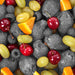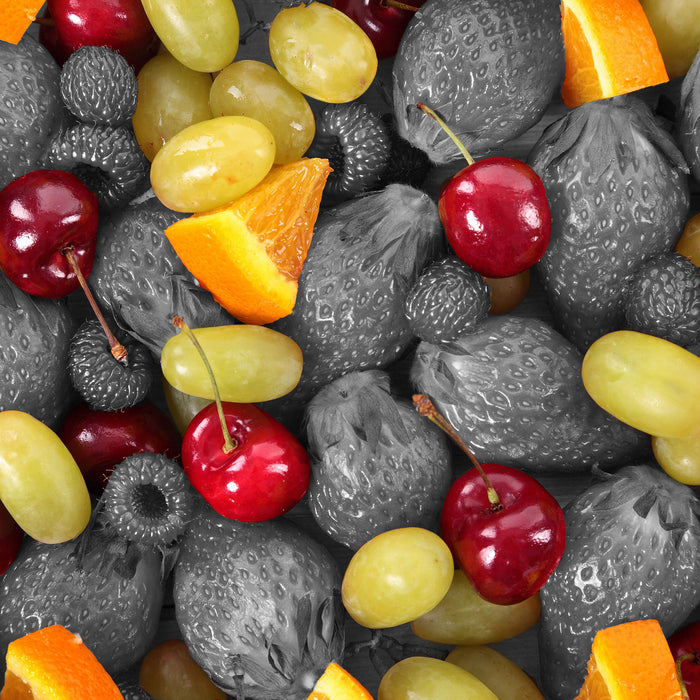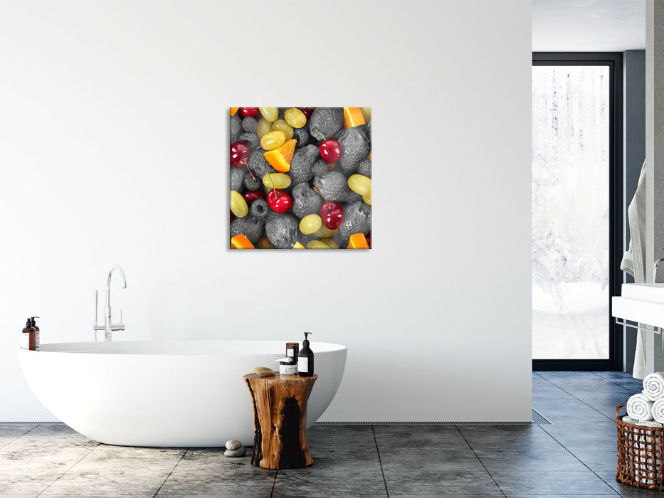Bunter Obstmix mit Weintrauben, Glasbild Quadratisch
