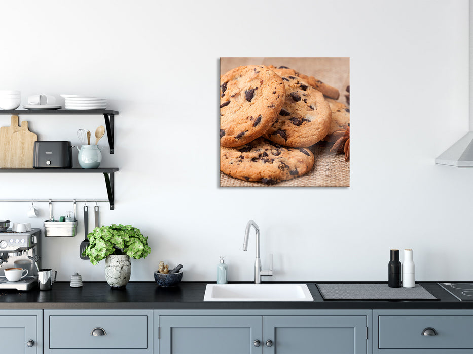 Cookies mit Schokostückchen, Glasbild Quadratisch