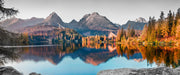 Herbstlicher Natursee in der Slowakei B&W Detail, Glasbild Panorama