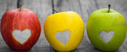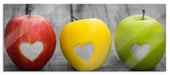 Herzäpfel auf Holztisch, Glasbild Panorama