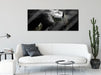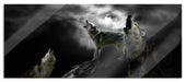 Heulende Wölfe bei Mondschein B&W Detail, Glasbild Panorama