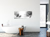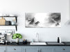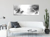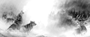Heulende Wölfe jagen Hirsch im Nebel, Monochrome, Glasbild Panorama