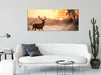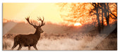Hirsch im Sonnenuntergang, Glasbild Panorama