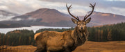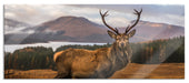 Hirsch in atemberaubender Landschaft, Glasbild Panorama
