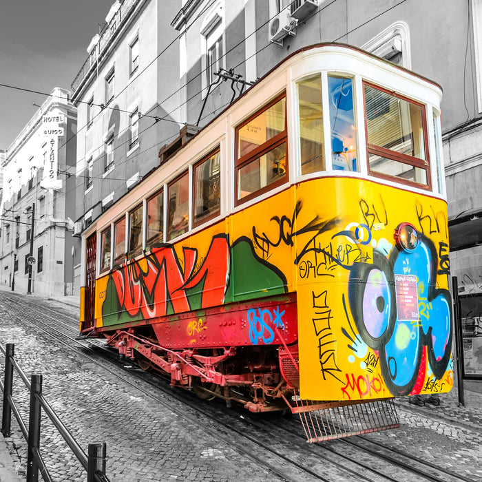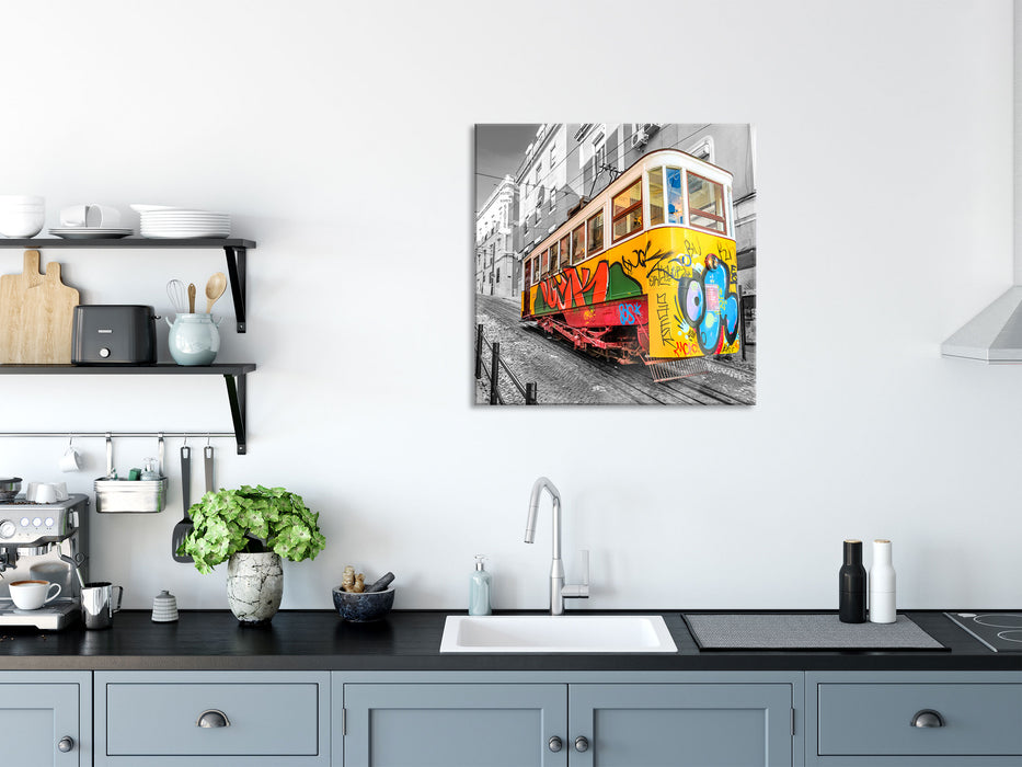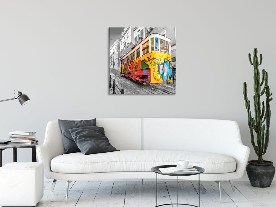 kleine Besprühte S-Bahn, Glasbild Quadratisch