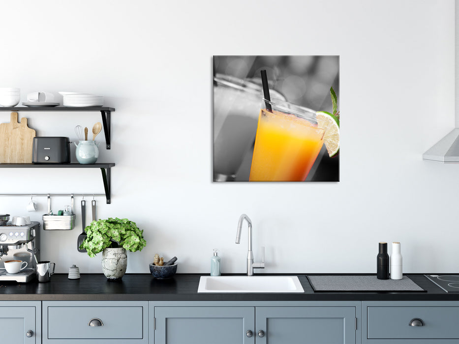 Leckerer fruchtiger Sommercocktail, Glasbild Quadratisch