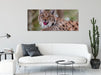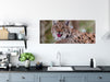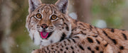 Luchs auf schneebedecktem Baumstumpf, Glasbild Panorama