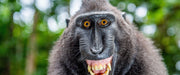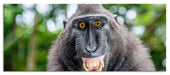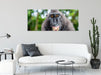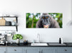 Lustiger Affe lacht mit offenem Maul, Glasbild Panorama