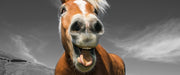 Lustiges Pferd in der Natur, Glasbild Panorama