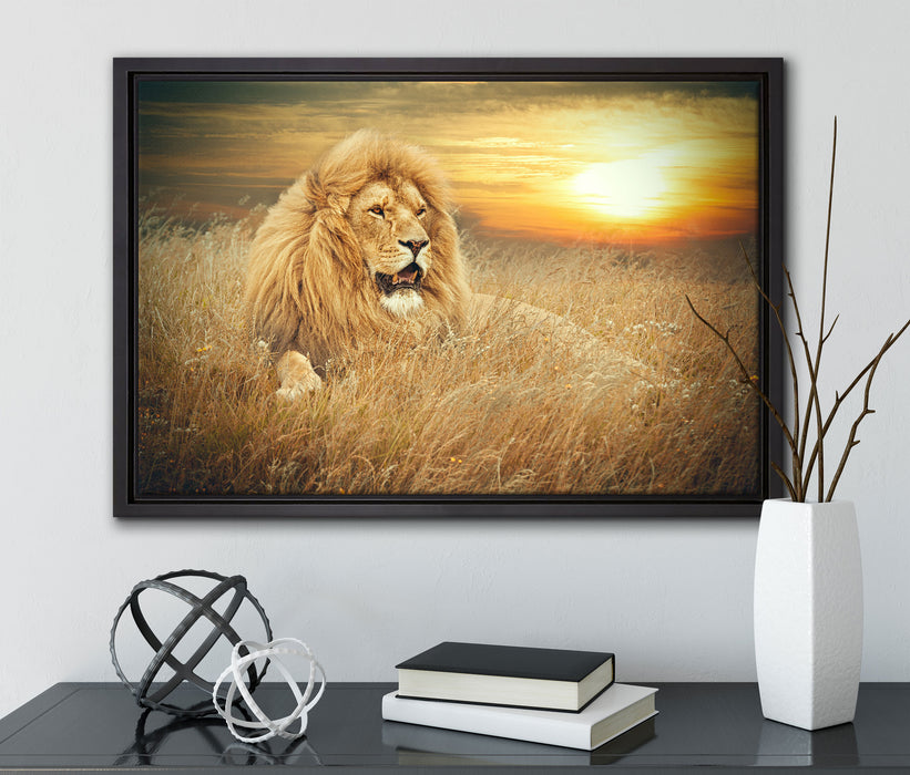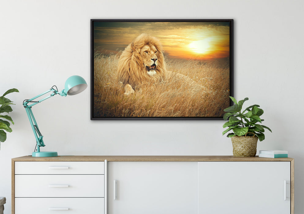 mächtiger Löwe, Leinwandbild mit Bilderrahmen