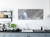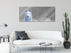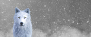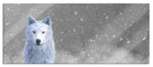Majestätischer weißer Wolf im Schnee B&W Detail, Glasbild Panorama