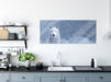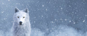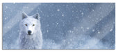 Majestätischer weißer Wolf im Schnee, Glasbild Panorama