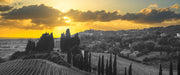 Malerische Weinberge in der Toskana B&W Detail, Glasbild Panorama