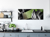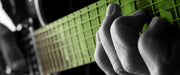 Mann spielt auf E-Gitarre, Glasbild Panorama