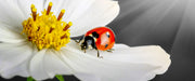 Marienkäfer auf einer weißen Blume, Glasbild Panorama