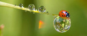 Marienkäfer Wassertropfen, Glasbild Panorama