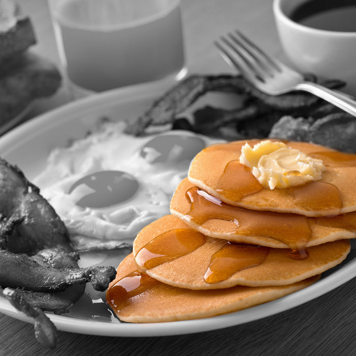 Pancakes zum Frühstück, Glasbild Quadratisch