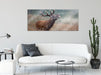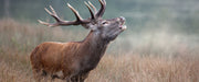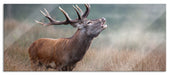 Röhrender Hirsch im Feld, Glasbild Panorama