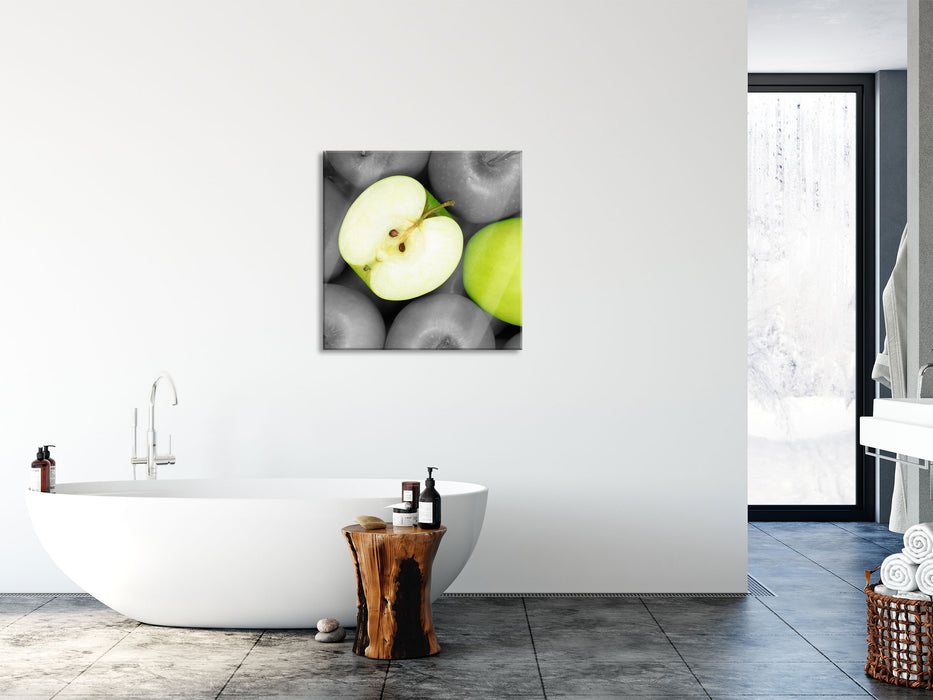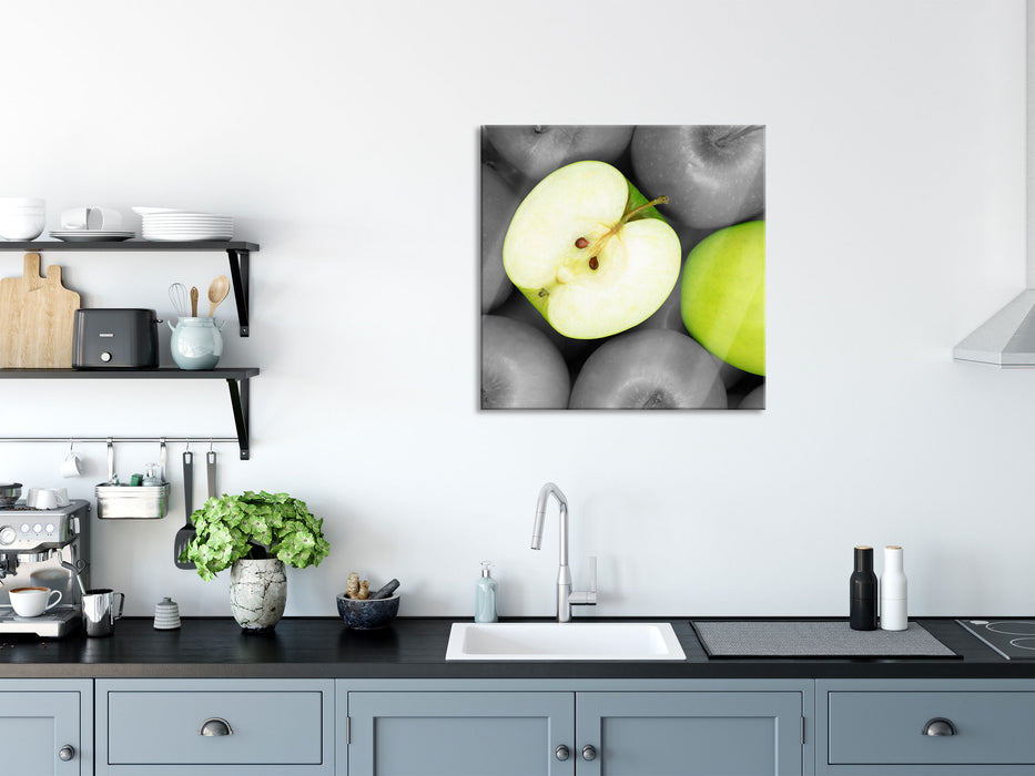 saftige grüne Äpfel, Glasbild Quadratisch