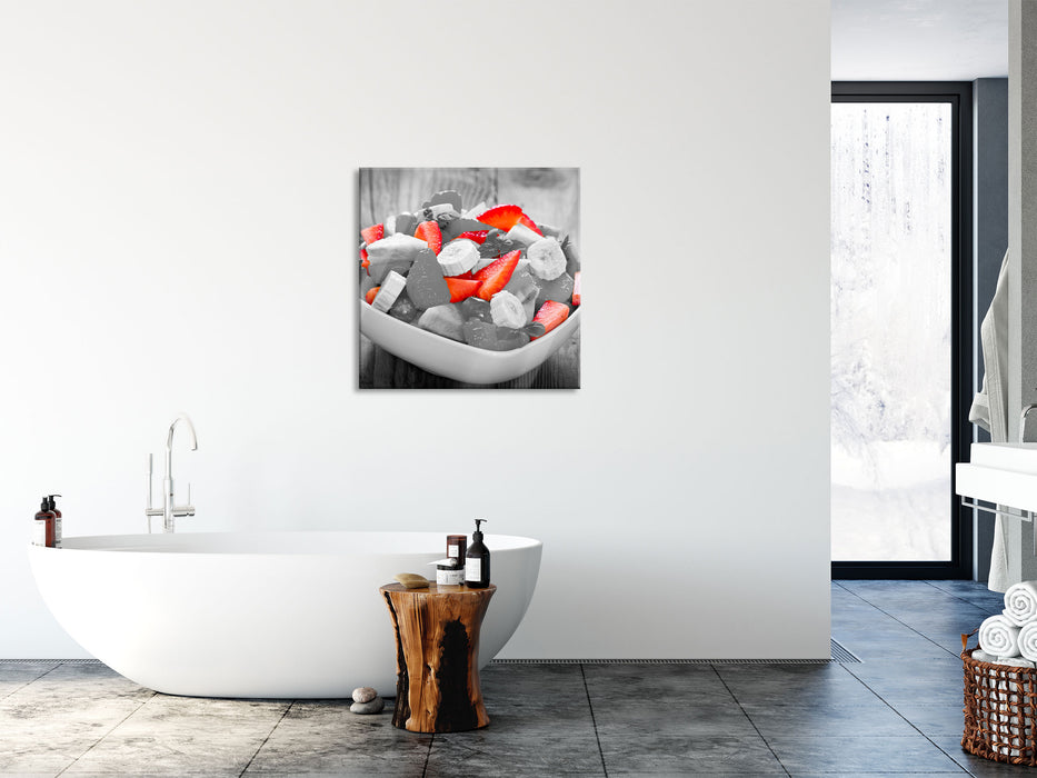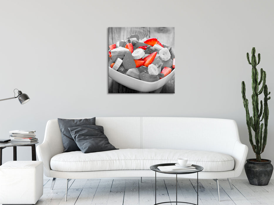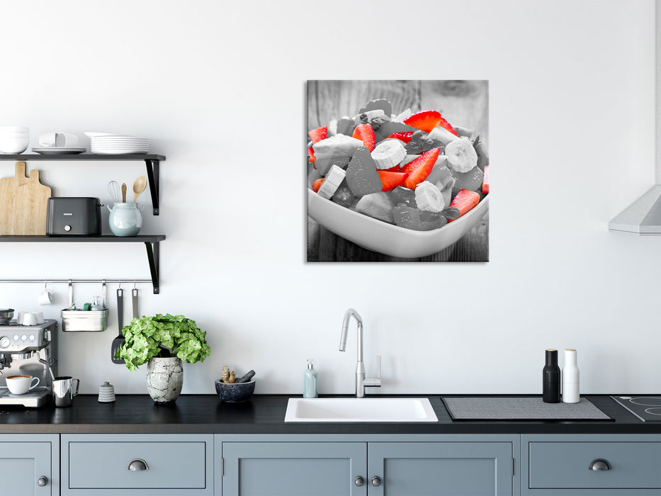 schmackhafter Obstsalat, Glasbild Quadratisch